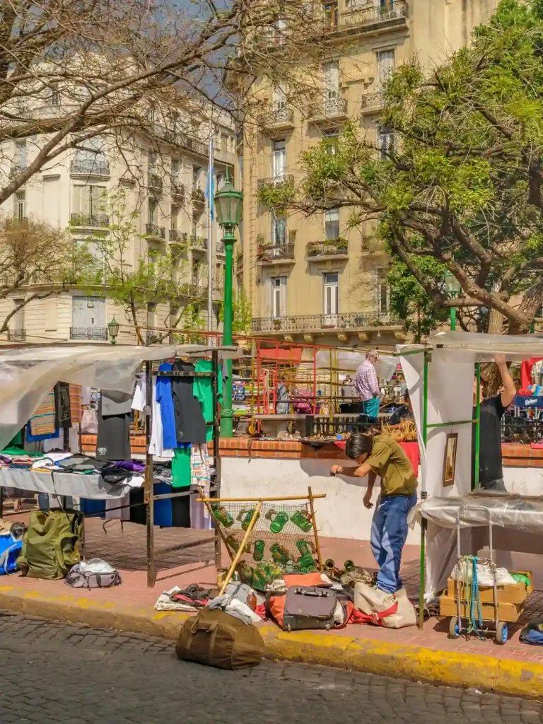 Zona bohemia con calles adoquinadas, mercados de antigüedades y espectáculos de tango.