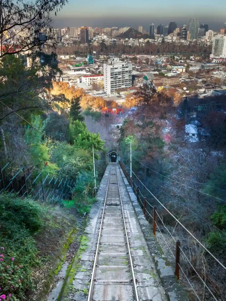Parque urbano con miradores, senderos y vistas panorámicas de Santiago y los Andes.